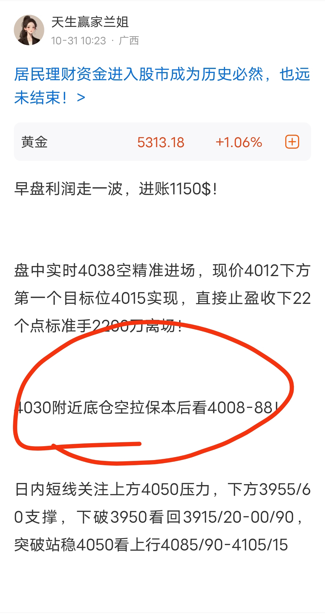 连续止盈!短线进账再+1039早盘4030附近空现价4005下方第二个目标位40