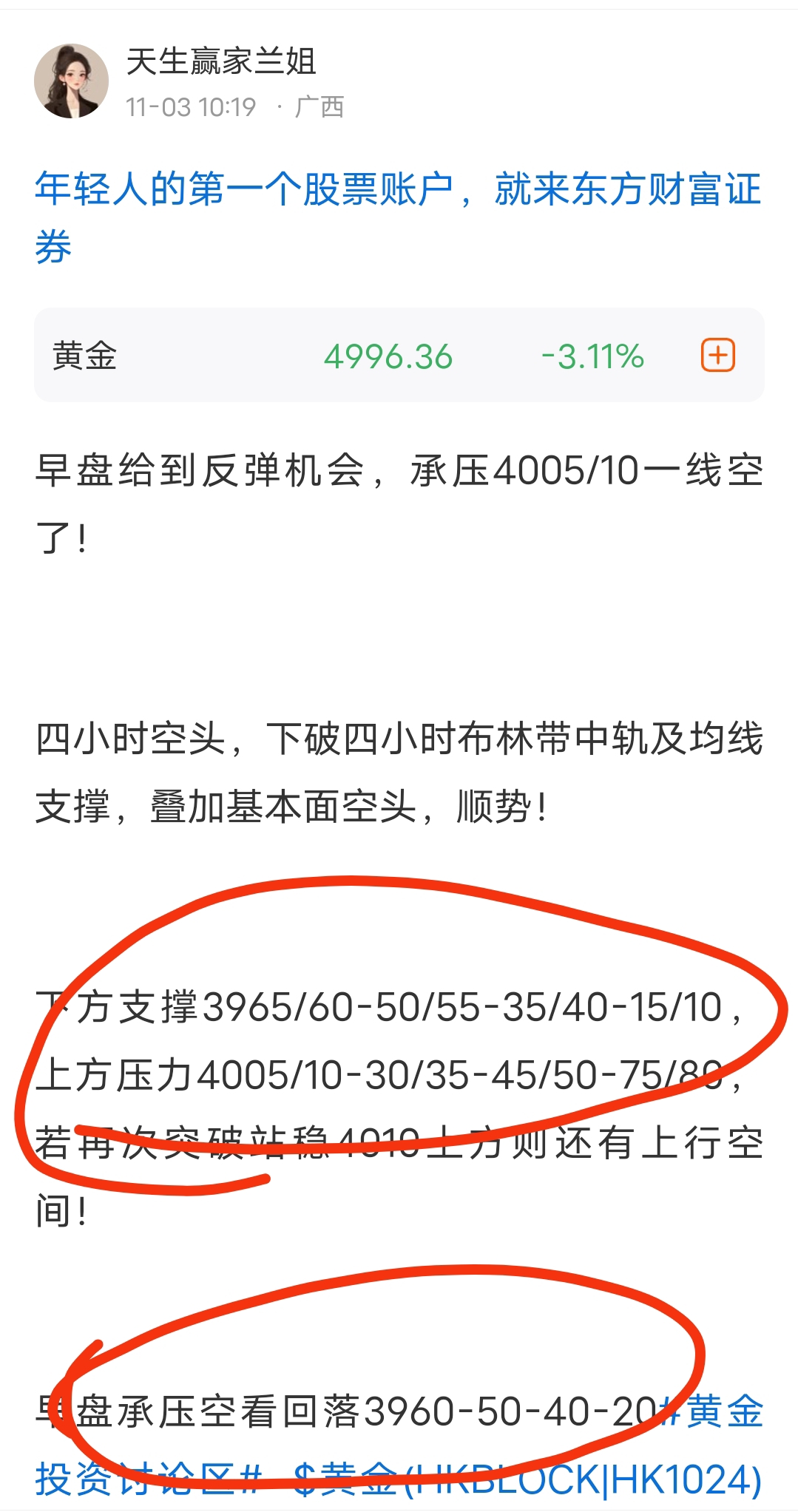 下方先看3960支撑,下破将退守3945/50支撑,再次下破将直接看3900/05-85/80-75/70-55/50#黄金投资讨论区# $黄金(HKBLOCK|HK1024)$