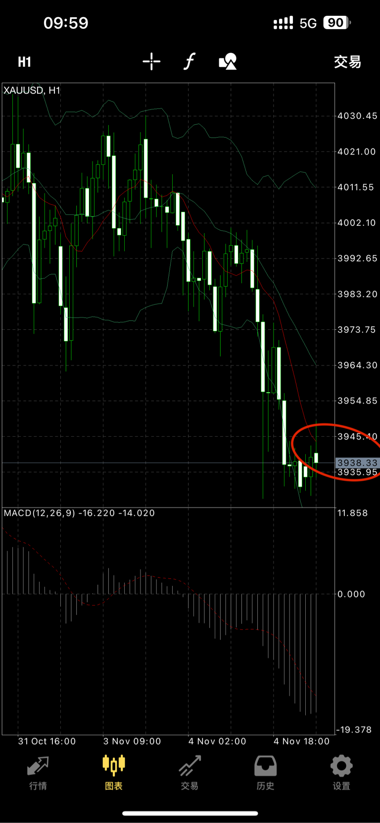 日内第1⃣笔进场,依托一小时MA5均线支撑现价3940多进场,目标看3955上方