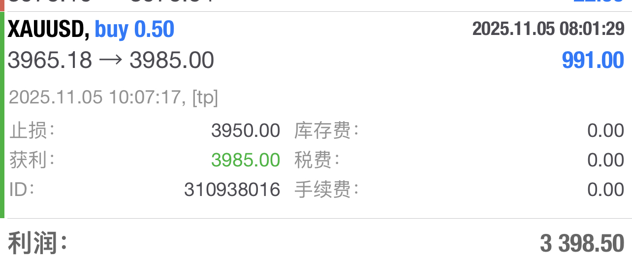 现价3985上方,3965多目标位3985实现,止盈离场收下20个点标准手2000刀!
