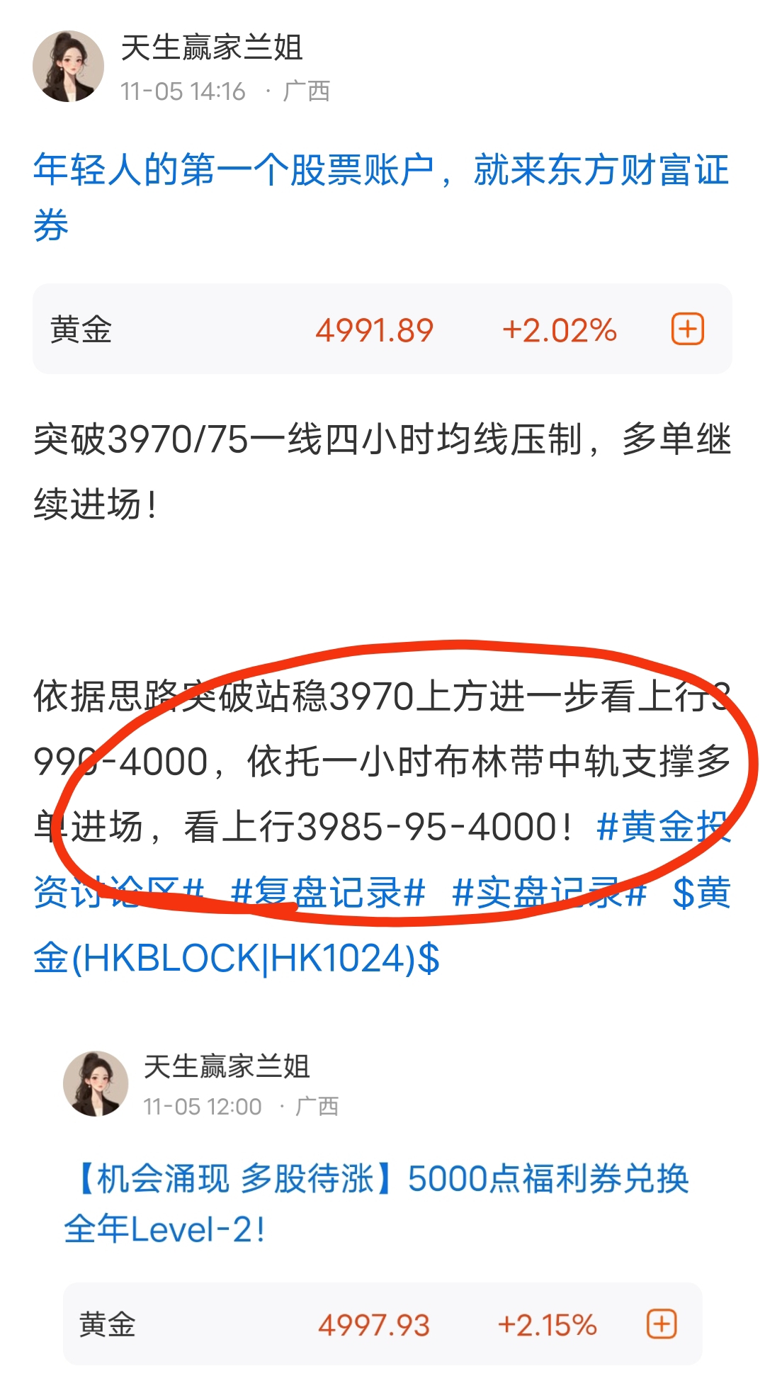 止盈减仓!再收下20个点1095$!现价3985上方3965多抵达第一个目标位止