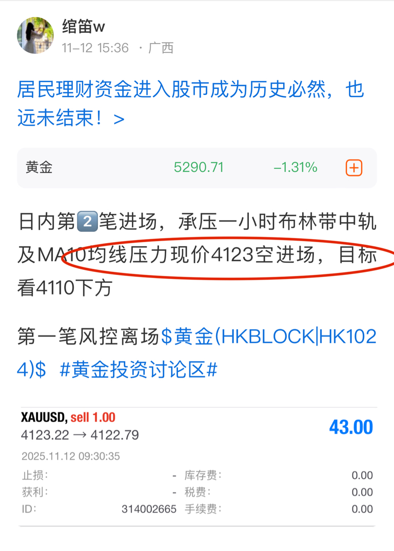 现价4113下方,4123多在4113止盈减仓,先拿下10个点,标准手1000刀!