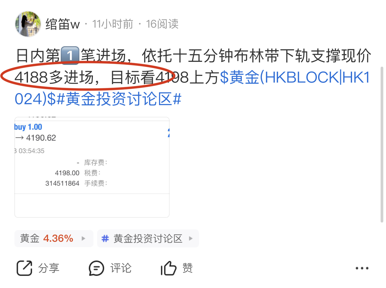 目前暂时观望等待入场机会$黄金(HKBLOCK|HK1024)$ #黄金投资讨论区#