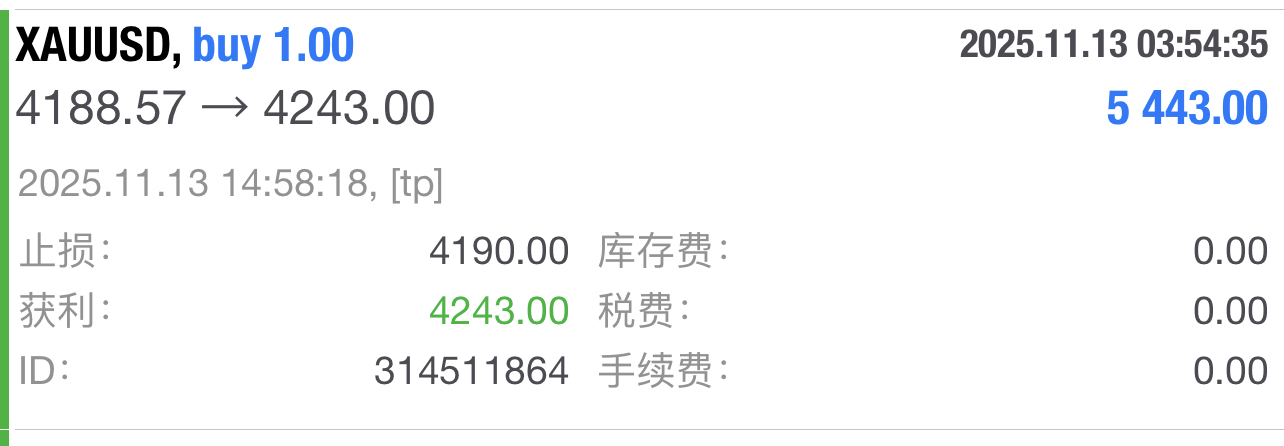 底仓4188多在4243止盈离场,拿下55个点,标准手5500刀!
