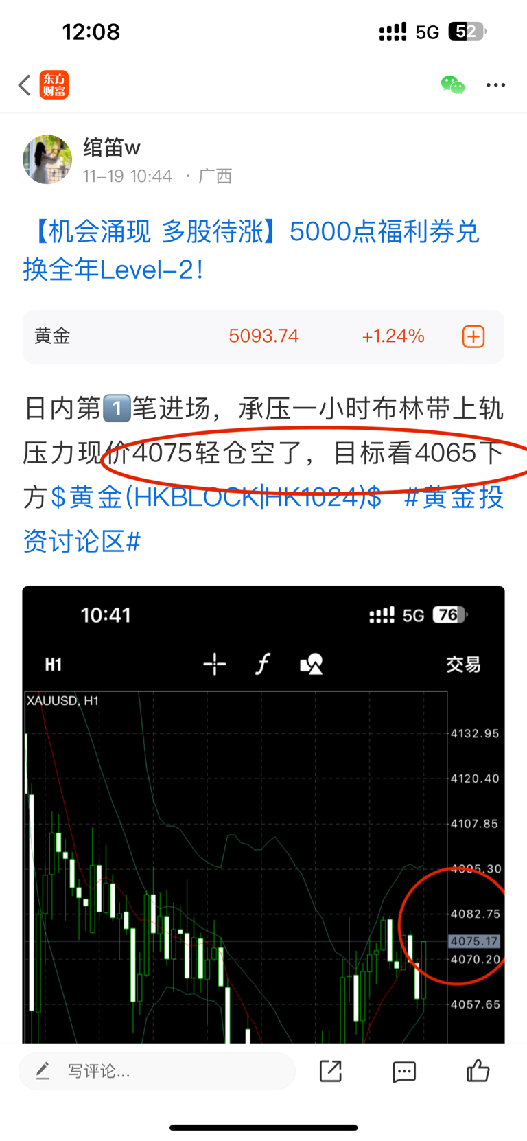 剩余底仓拉保本继续下看4055-4050支撑$黄金(HKBLOCK|HK1024)$ #黄金投资讨论区#