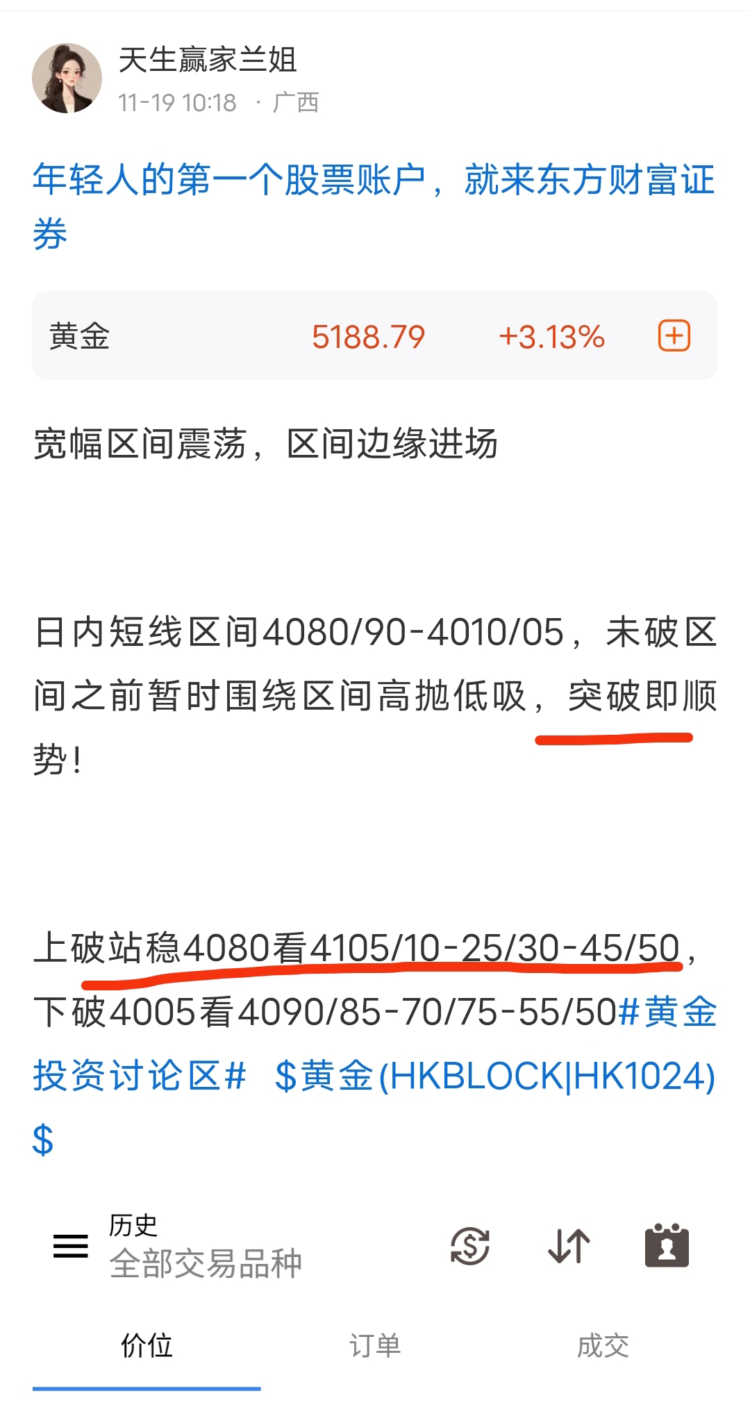 既然突破了那就顺势!突破站稳4080一线,现价4080-85多进场,看上行409