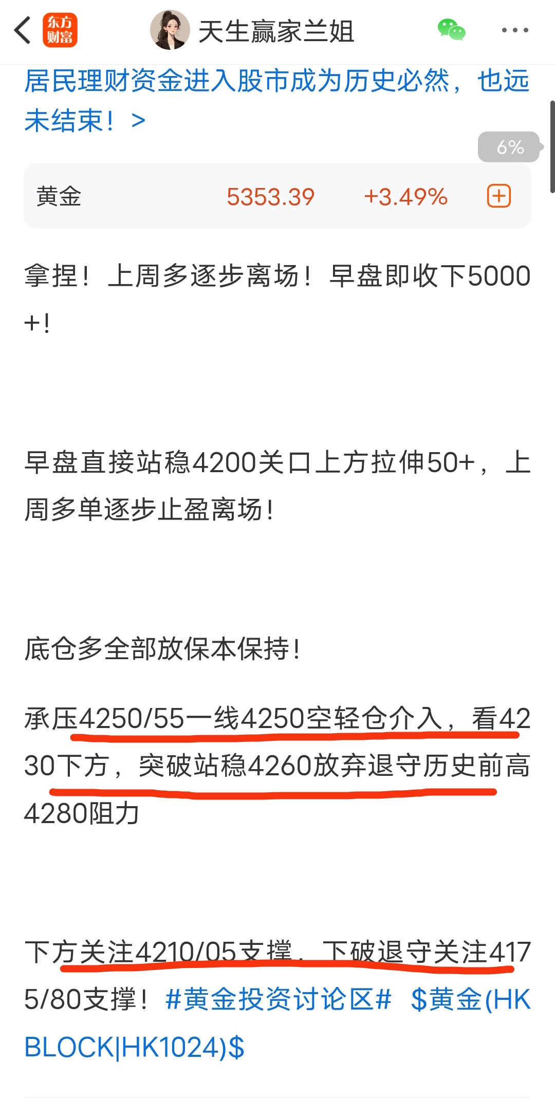 接下来按思路关注4210-05一线支撑多机会!#黄金投资讨论区# $黄金(HKBLOCK|HK1024)$
