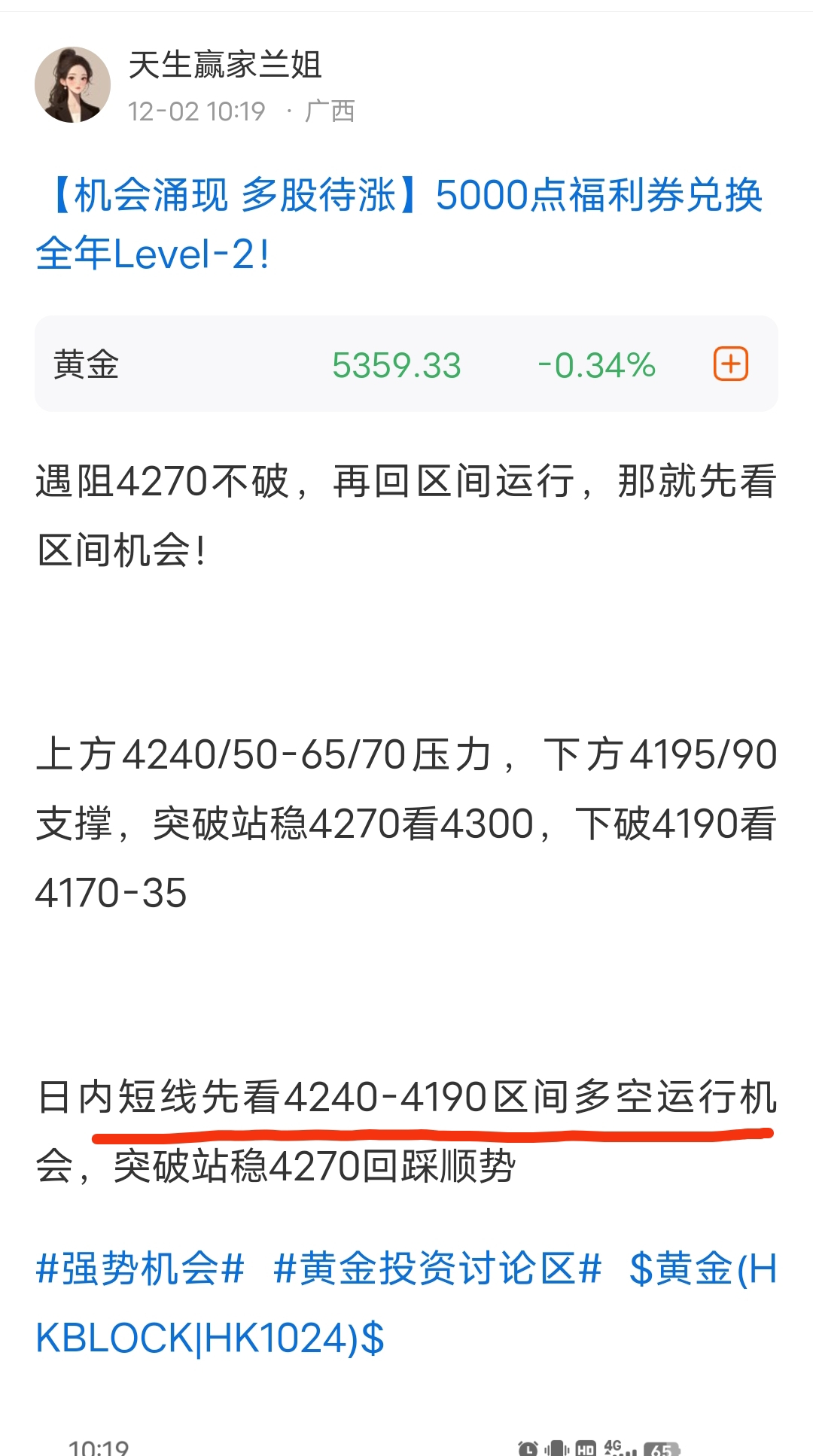 依托4190支撑4200多进场,留仓95加,上看4220-30-40;下破4190放弃#复盘记录# #黄金投资讨论区# $黄金(HKBLOCK|HK1024)$