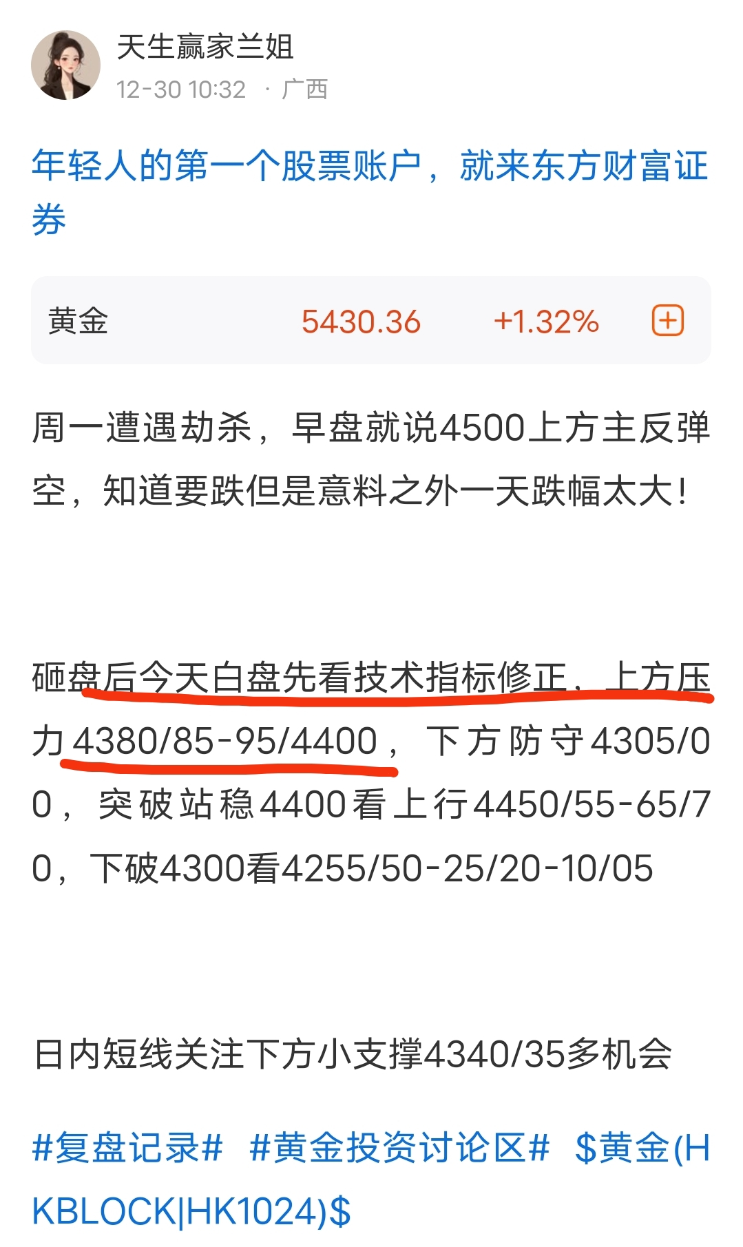 前期密集阻力区4385/90-4400,参考压力区不破空,突破站稳4400上方还有上行空间!$黄金(HKBLOCK|HK1024)$ #黄金投资讨论区#