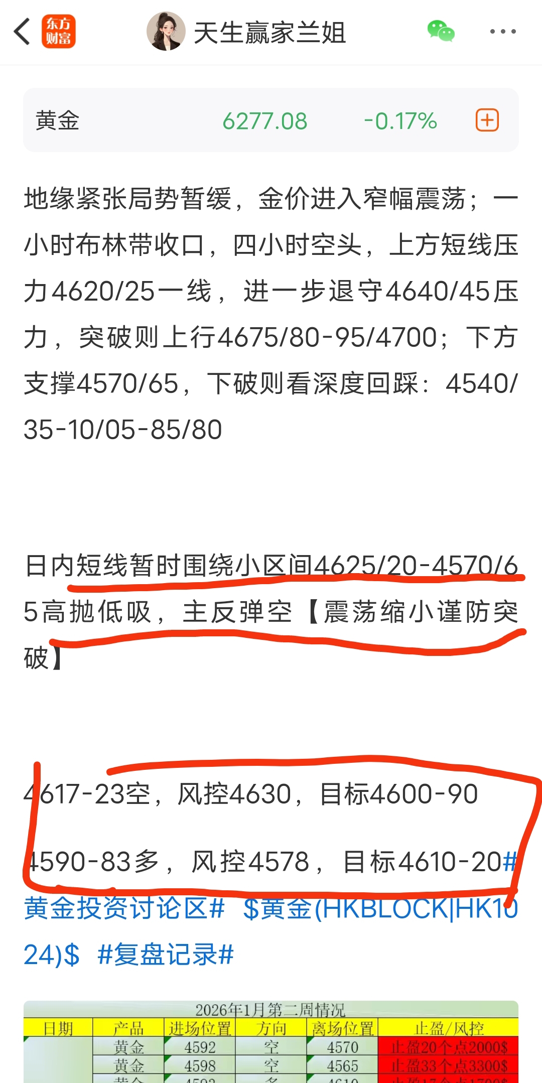 止盈减仓!现价4600上方美盘4583多第一个目标位达到,按计划执行减仓先收下1