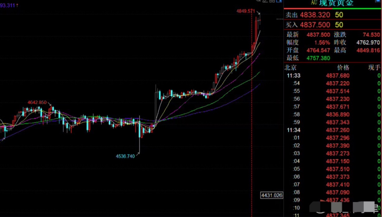 第二单:黄金4830的多单在4838兑现8个点按照标准1手:8个点=800u=5