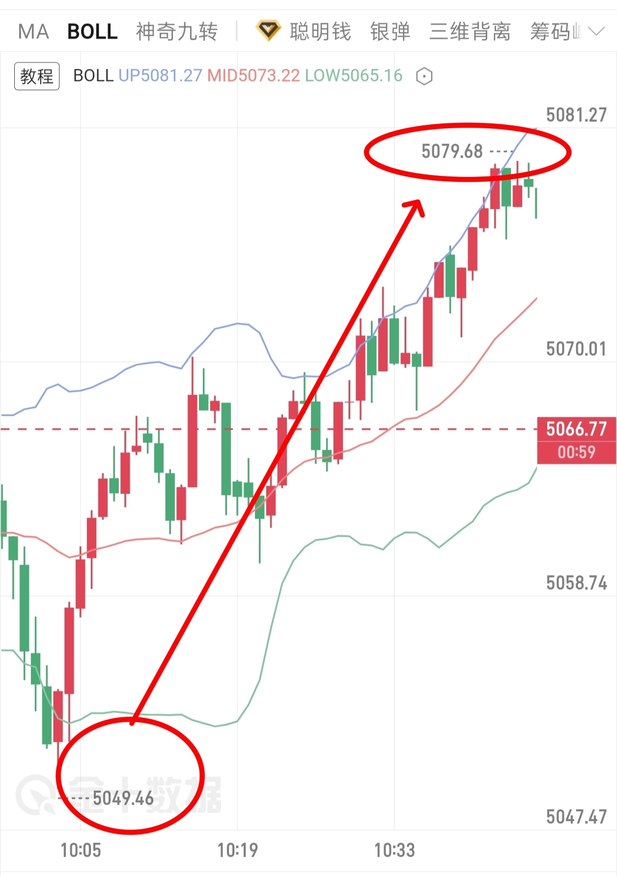 目前高位,就是要多空转换,十点提示的5045-55的多,直接接上我们昨晚错失的哆