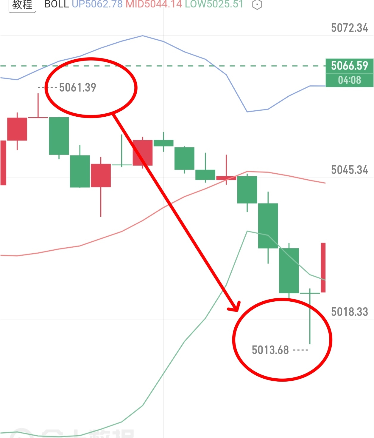 早间思路,直接兑现,5055的空,直接来到我们的目标位5015,最低5013,4
