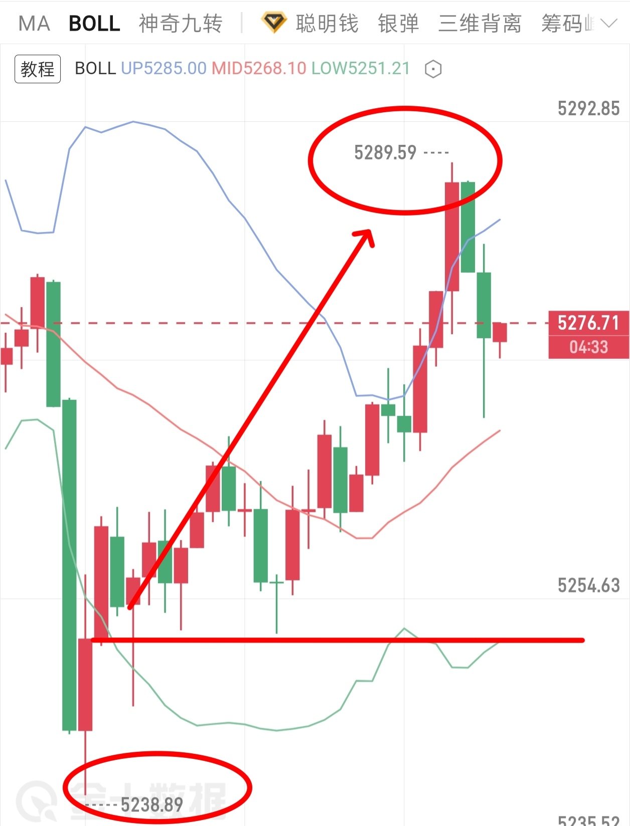 怎么说?提示大家5250的哆丹,已经来到我们的第一目标位5288,最高5289,