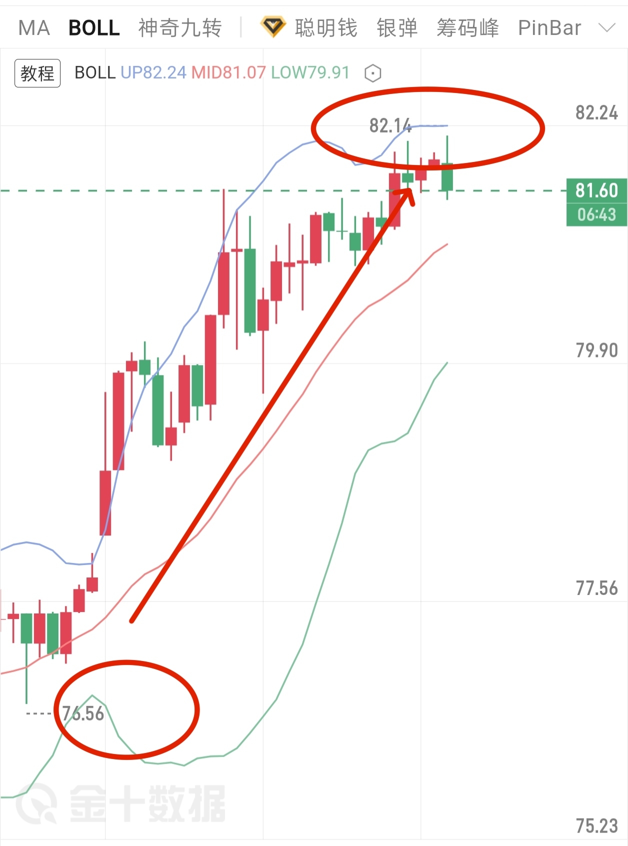 今天午夜给出白银77直接多,不犹豫、突破80关键压力,最高冲至82,5点空间