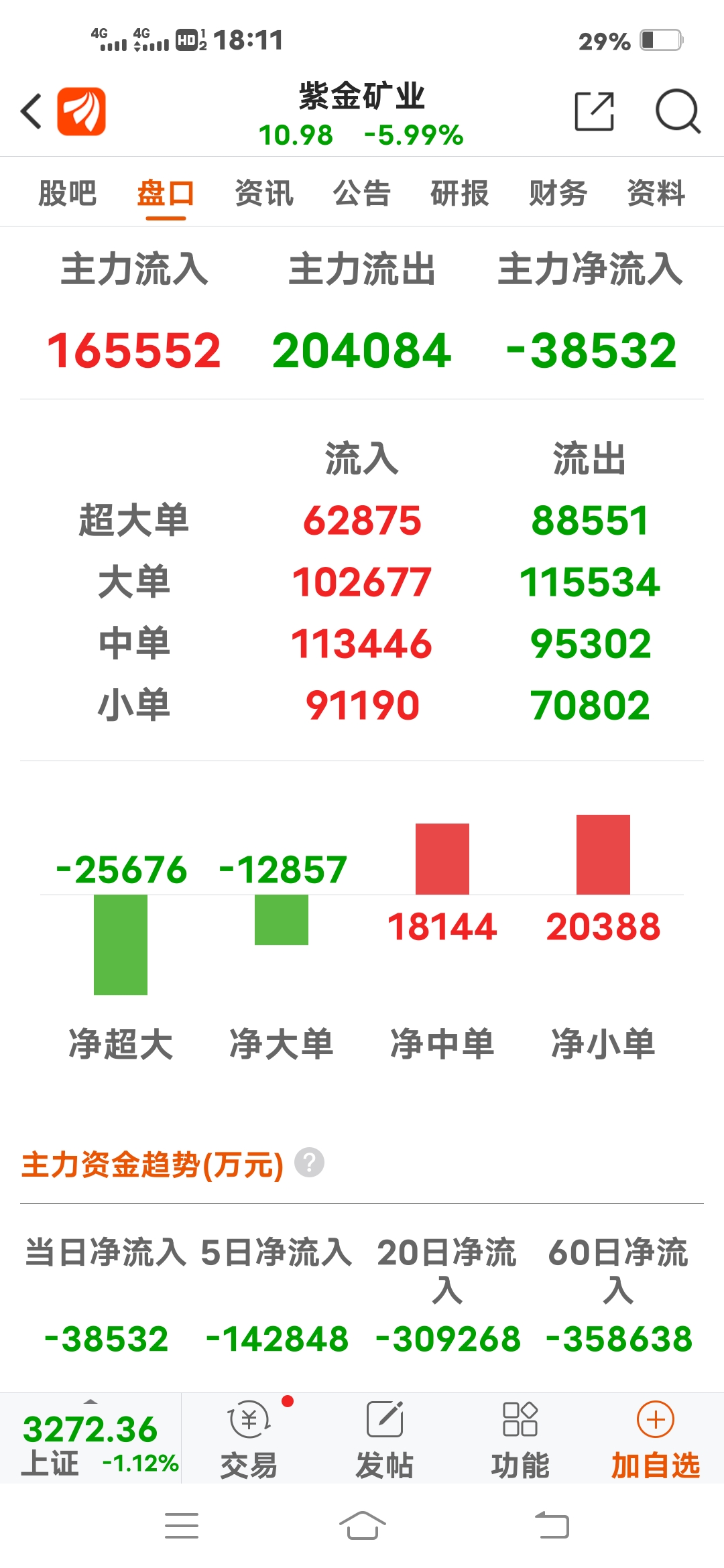 $紫金矿业(SH601899)$ 砸盘到此为止了,与早几天不同,开盘后真正砸时间只有五分钟到