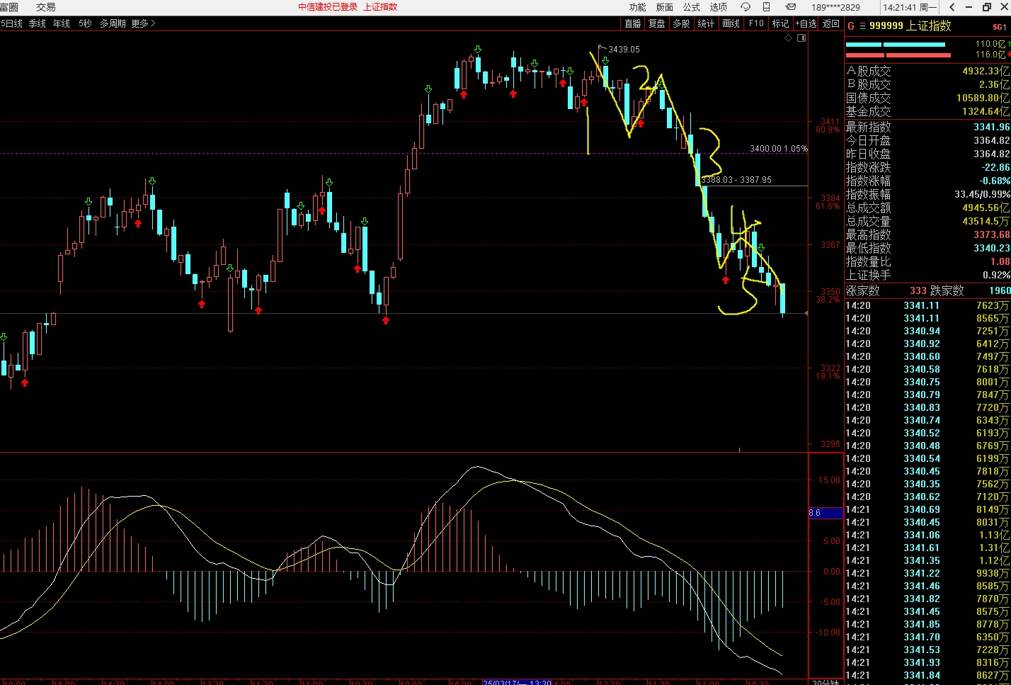 昨天在文章当中说了指数下方的支撑位在3330点~3320点左右。今天的最低点3340点,盘中特别提示也特别希望他去摸一下3330点。但是今天的最低点是3340点然后拉起来了。昨天在文档里面还给大家讲了,把上个星期五的k线看成是2月28号的k线就可以,那么今天的k线就类似于3月1号的走势,到收盘的时候果然是探底回升。下午2:21直播当中提示大家上证指数15分钟是背驰结构。而且15分钟ma CD是的底背离。直播中多次提示到15分钟和30分钟大资金大幅度的超跌。看下面的图片是直播当中实时的截图。图片右下角有交易时间。