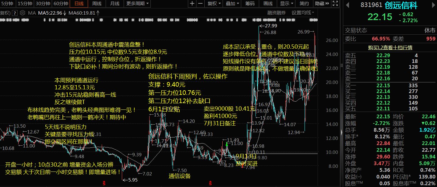 创远信科 初始小碎步推入,途中达预期则逐步加仓,前仓不赢后仓不补原则,途中折返操作即可,珍惜市场每次机会,阶段高位则应降低仓位操作!勿逆势操作!趋势未变之前耐心持有,小仓位参与!蛰伏筹码来之不易!旨在调理吉林虱子、老槐树!操盘一个标的途中必须做好技术预判并记录操作功课,便于修正自己!炒股不是儿戏,关乎自己的钱袋子!确保资金管理红盘即可!任何位置不满仓,勿融资操作!吉林虱子、老槐树共勉之!