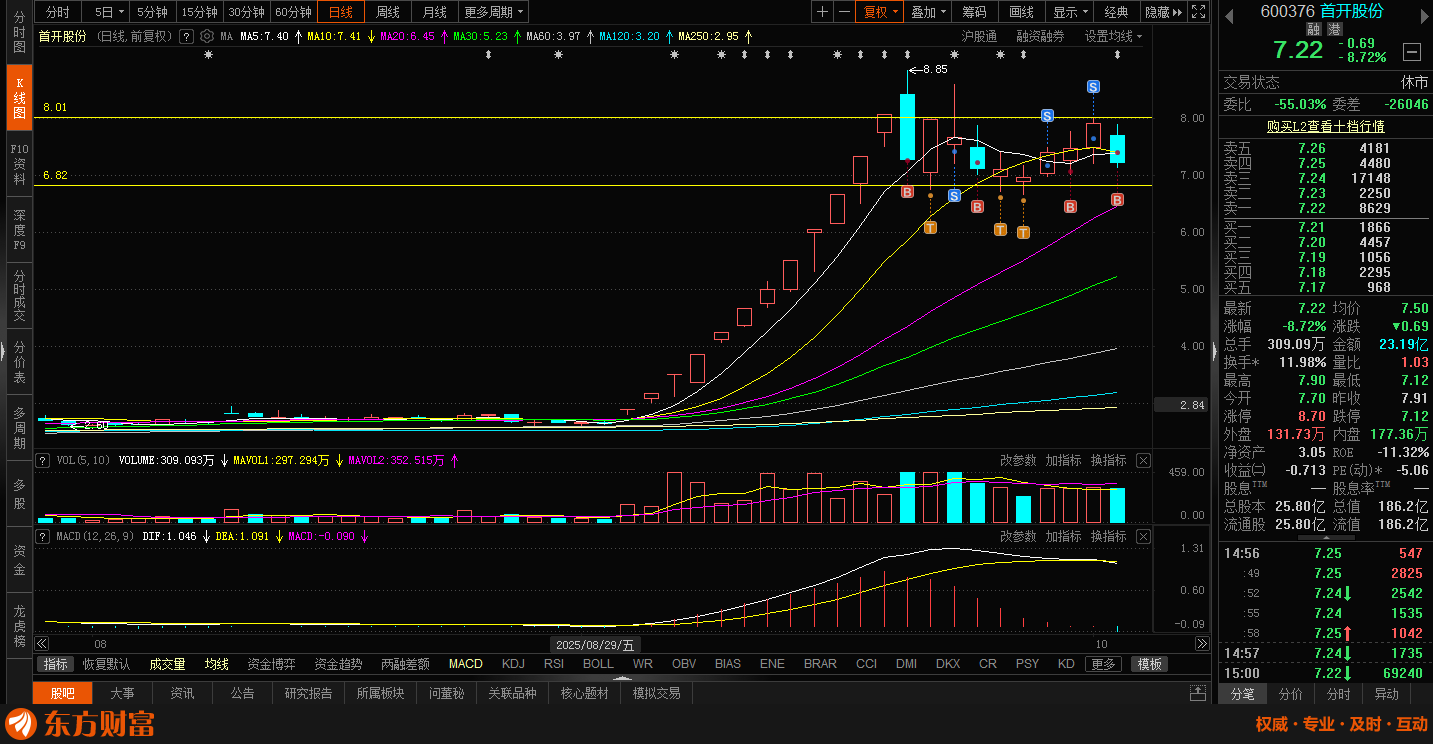 随着上纬新材的落幕,宇树影子股首开必将撑起大梁。预计短期内将在6.8元到8元之间做箱体震荡,待20日线与十日线、五日线缠绕后再向上突破,乐观看到12元。若短期跌破箱体底部,则果断离场。