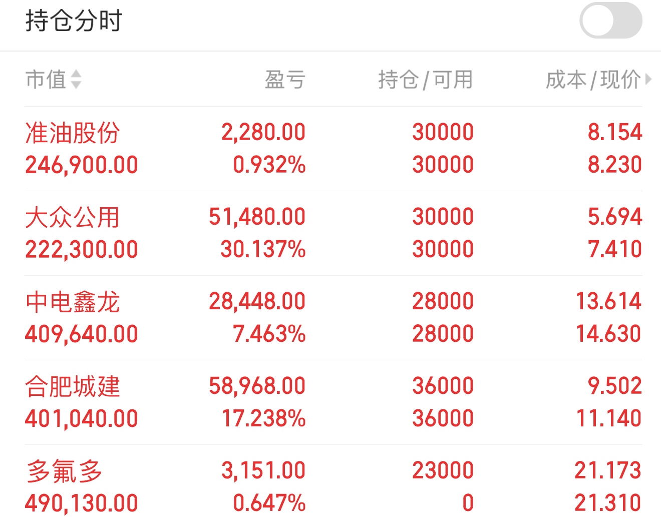 当前持仓