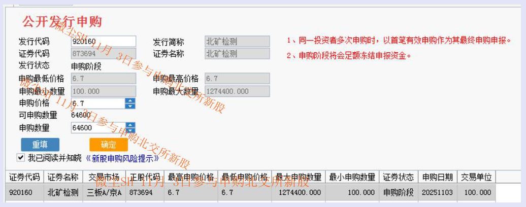 以2025年11月3日申购的北矿检测为例,预计中签100股需约290万元资金,低于230万元的账户大概率无法中签。