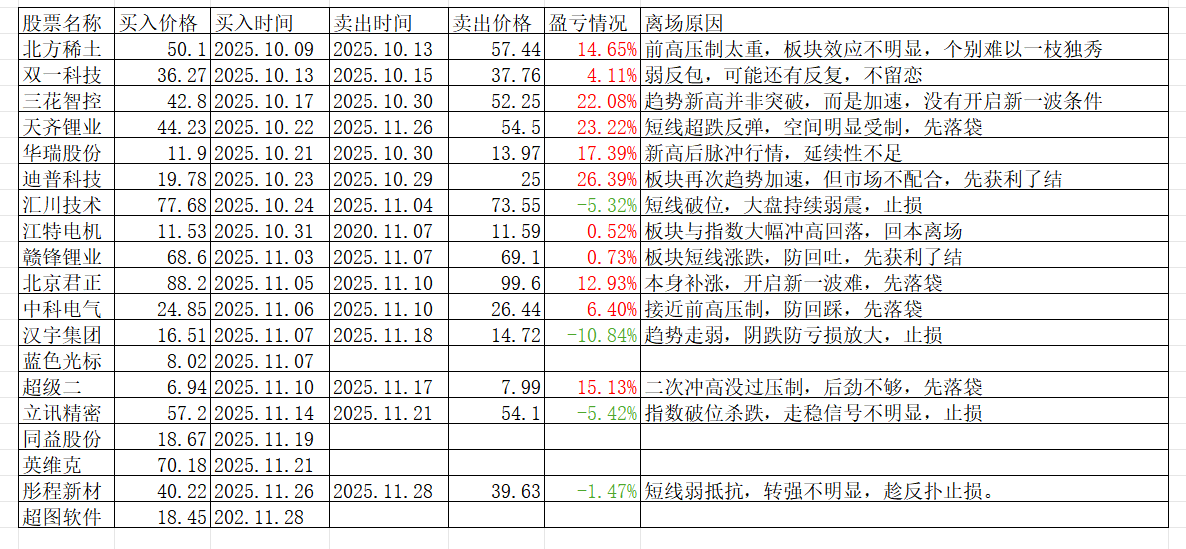 12月首个交易日最实在的变化就是观望情绪好转了不少,成交额比上个交易日多了2000多e,重新回到了1.8到2万e这个日常活跃的水平线之上,我们的侧重点就是继续在里面积极寻找节奏性的机会。现在指数又回到了那个熟悉的整数关口附近,这个位置也是上一波短线调整开始的地方,说实话,这波从底下涨上来的修复过程,一直就挺纠结,现在到了前期卖盘比较重的区域,多空双方的分歧肯定会加大,博弈会更激烈,如果后续某天,成交量放得特别大,或者达到一个阶段性的天量,或者盘中震荡幅度比较大,那就要小心了,这可能是短期力量耗尽,但目前来看,量和价配合得还行,普涨格局也大大提振了市场情绪,指数应该还有往上冲一冲的惯性。