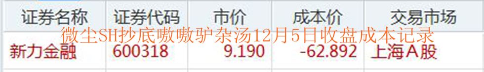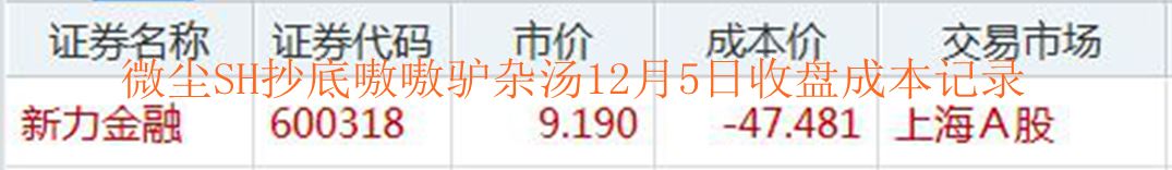 12月5日收盘二个账户新力金融成本!小字辈小槐树咋能超越爷爷?操盘实力、操盘功底?爷爷抄底强悍吗?哈哈 爷爷当然也有一百股交易滴!哈哈 哈哈 哈哈