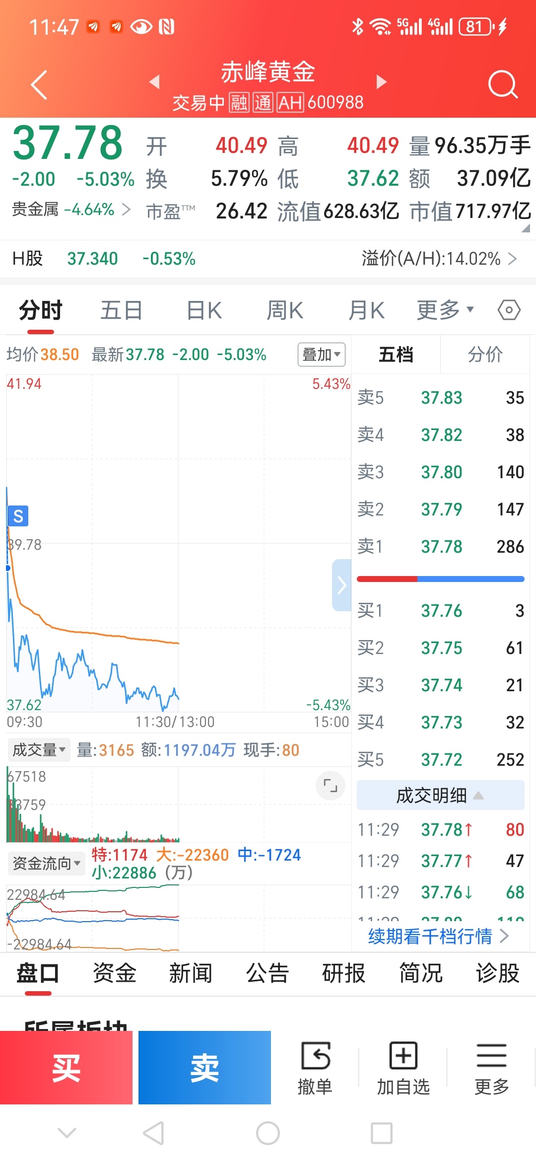 今天冲高减仓了神剑股份,看大盘普涨,情绪高涨,顿时感觉到卖飞了,此时再追神剑又担心做倒T,各板块大致看了一下,发现白银黄金跌得最凶,白银杀跌没有开板的迹象,黄金还有活口,西部和赤峰当时正在深水区奋力挣扎,换手承接都还好,于是-6和-9的位置分别搞了少量赤峰和西部。后面想想春节临近,婚庆喜事多,哪家还不买点金银珠宝啊,于是又水下搞了一丢丢萃华珠宝和莱绅通灵。主要还是看他们近期急跌,幅度较大,思路是搏超跌反弹。