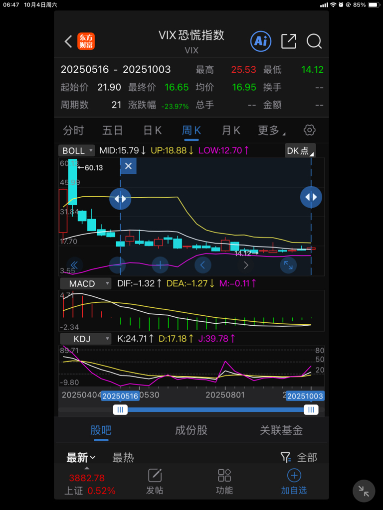 从5月初停战那周开始算,VIX至今刚好走完21周,周级别MACD完成两波调整,K