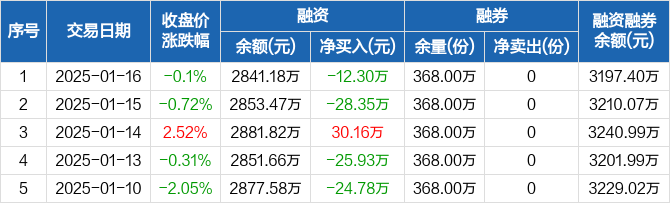 中药ETF:融资净偿还12.3万元,融资余额2841.18万元(01-16)