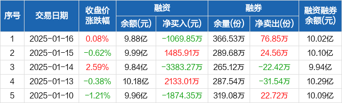 沪深300ETF:融资净偿还1069.85万元,融资余额9.88亿元(01-16)
