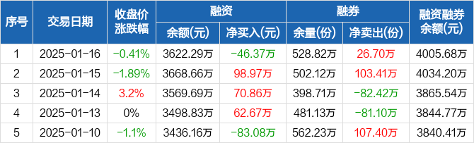 高端装备ETF:融资净偿还46.37万元,融资余额3622.29万元(01-16)