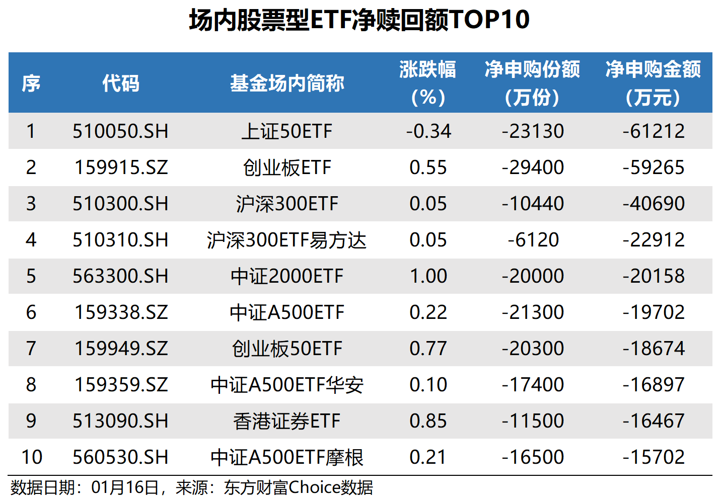 数据还显示,昨日净赎回金额最多的场内股票型ETF为上证50ETF,赎回金额6.12亿元;创业板ETF紧随其后,赎回金额5.93亿元。