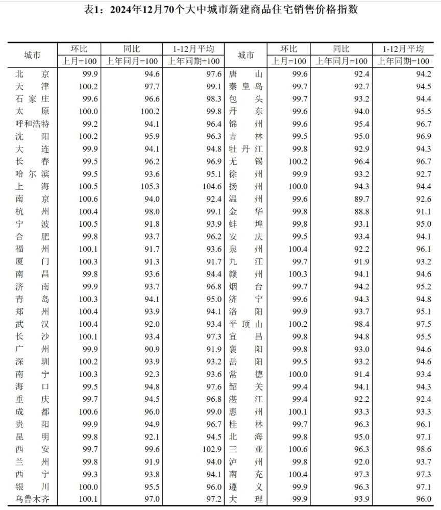 2024年12月份,二线城市新建商品住宅销售价格环比由上月下降0.1%转为持平;二手住宅环比下降0.3%,降幅比上月扩大0.1个百分点。三线城市新建商品住宅销售价格环比下降0.2%,降幅收窄0.1个百分点;二手住宅环比下降0.4%,降幅收窄0.1个百分点。