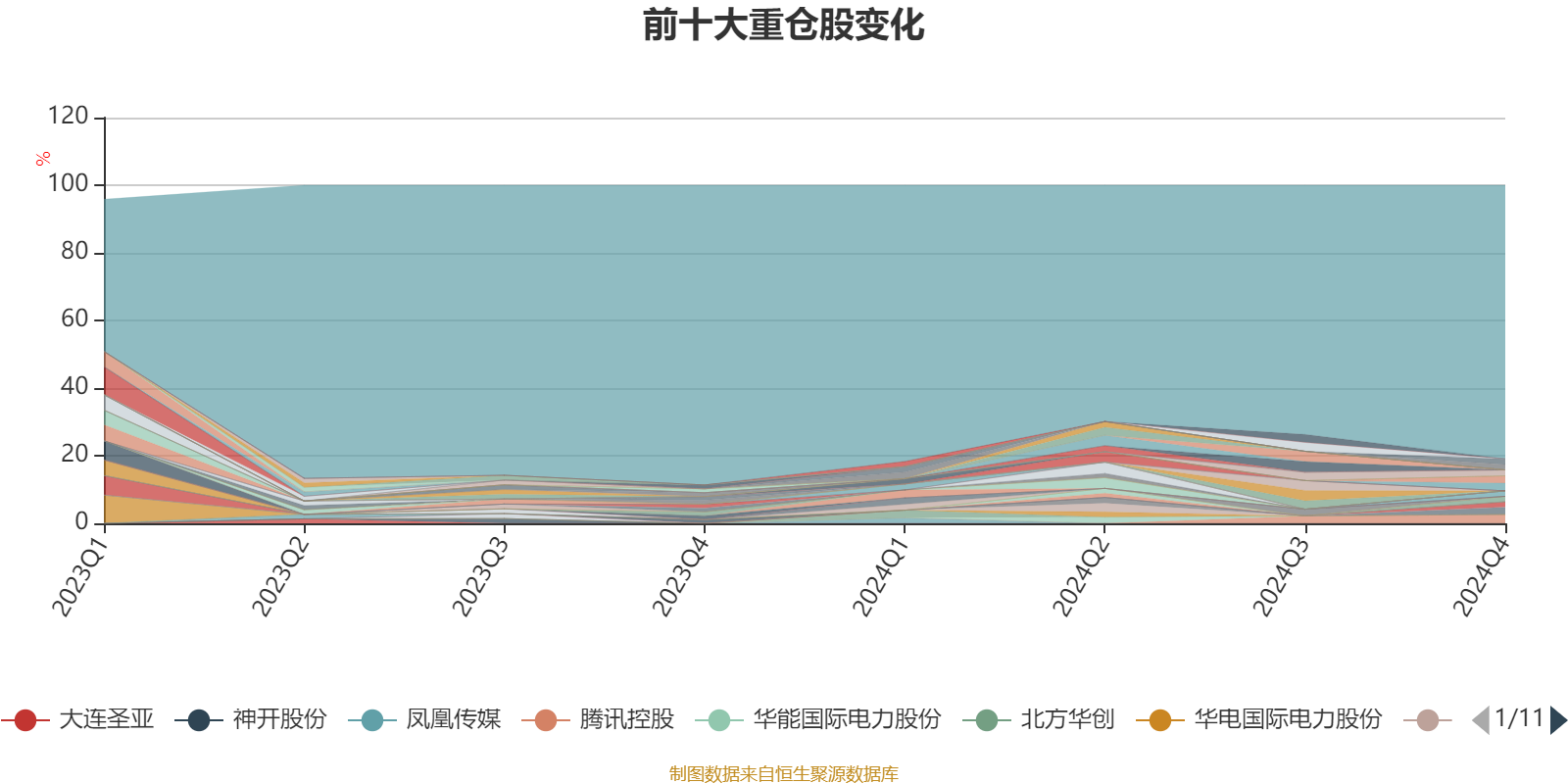 截至2024年四季度末,基金十大重仓股分别是腾讯控股、宁德时代、长江电力、小米集团-W、京东健康、南芯科技、伟隆股份、甘源食品、科大讯飞、分众传媒。