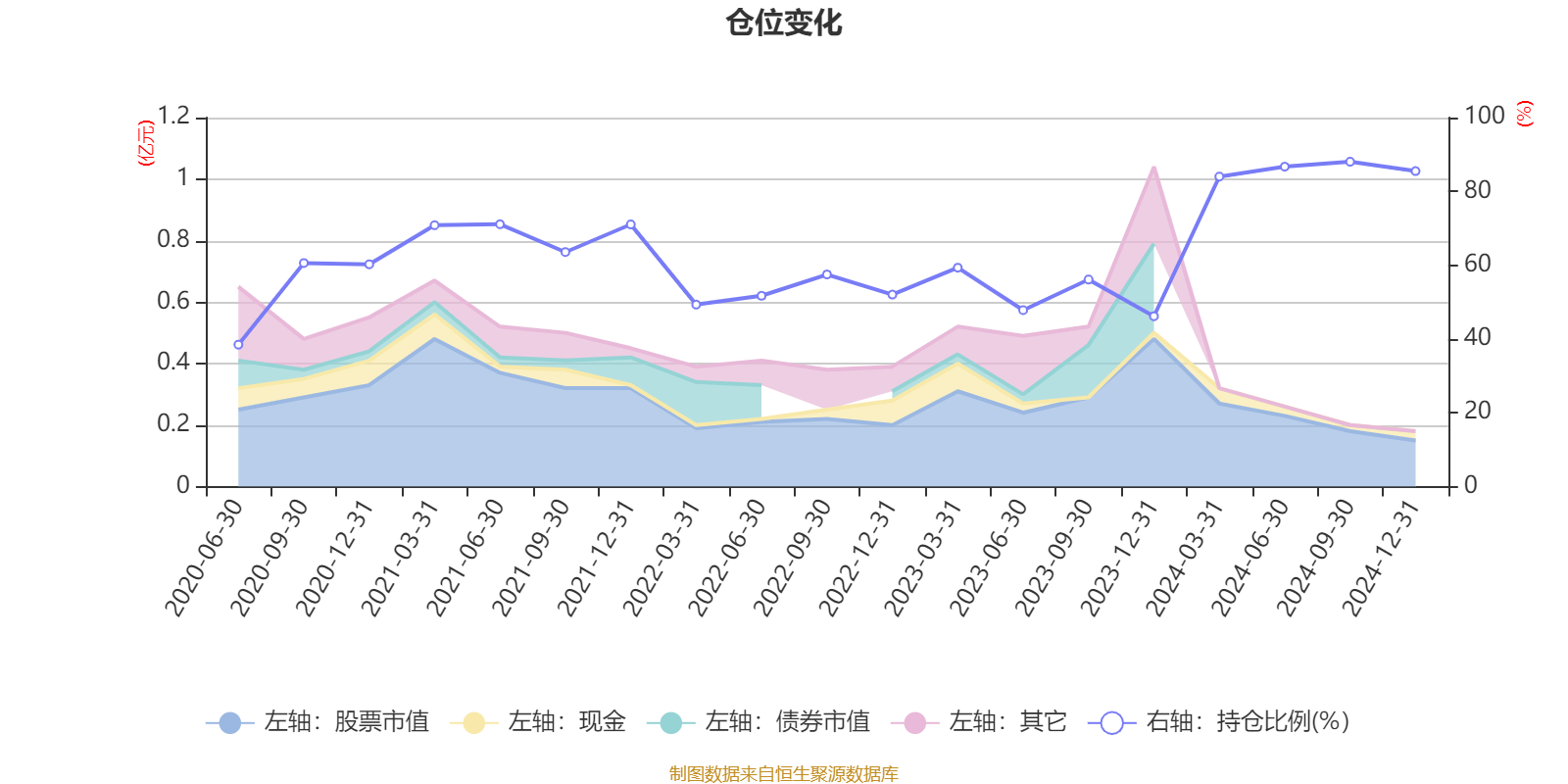 据定期报告数据统计,近三年平均股票仓位为63.69%,同类平均为45.66%。2024年三季度末基金达到88.05%的最高仓位,2020年上半年末最低,为38.46%。