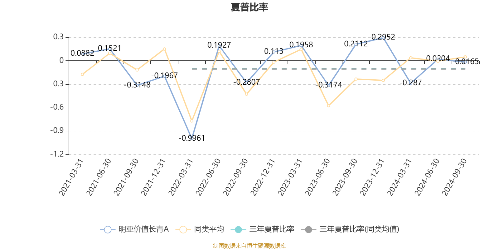 截至9月30日,基金近三年夏普比率为-0.0984,位于同类可比基金10/18。