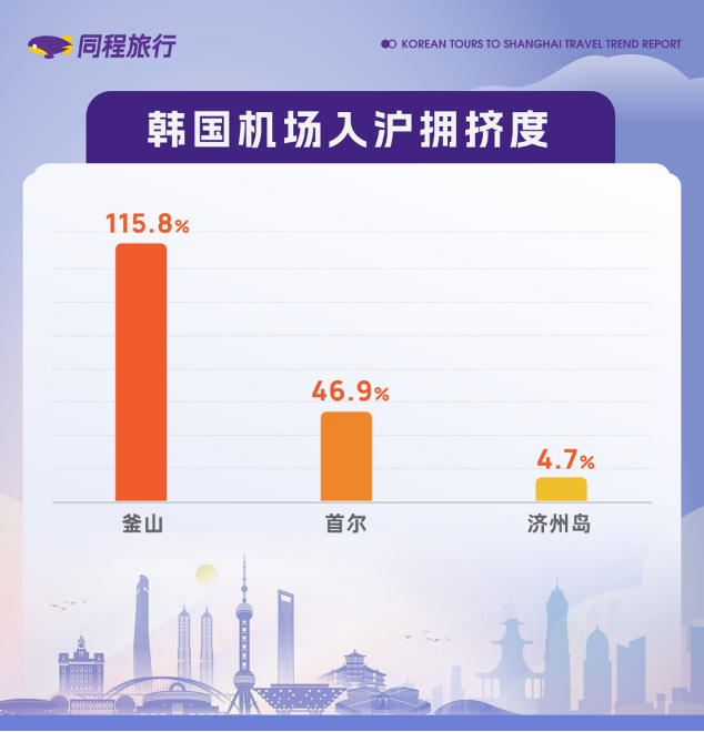 便捷的交通和完善的设施为韩国游客提供了极大的便利。同程研究院数据显示,每周韩国往返上海的航班,釜山机场出发的韩国游客最多,同比超过115.8%,成为来沪最拥挤的机场;其次是首尔46.9%,第三位是济州岛机场。