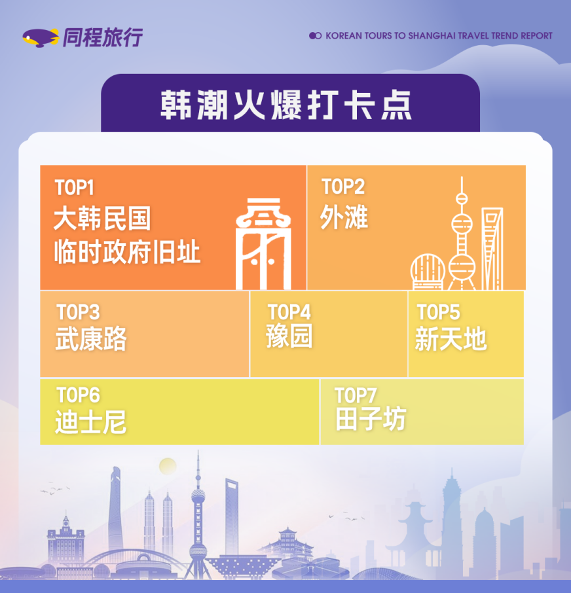 同程研究院相关负责人分析称,上海市黄浦区作为海派文化的集中地,辖区内的豫园浓缩了明清两代江南园林的精髓,外滩区域“万国”建筑群和夜间灯光的绚丽,对于韩国游客来说极具吸引力。此外,大韩民国临时政府旧址也在该区域内,所以黄浦区的“韩潮”浓度特别高。