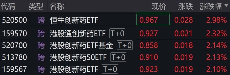 此外,还有多只港股通创新药等ETF涨逾2%。