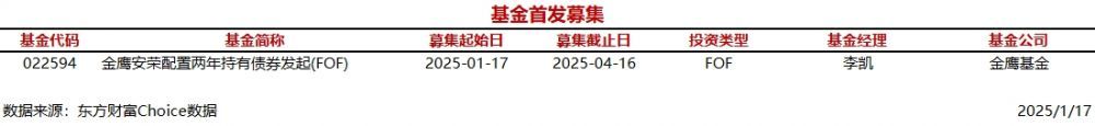 南方财经1月17日电,据东方财富Choice数据统计,今日有1只FOF首发募集。