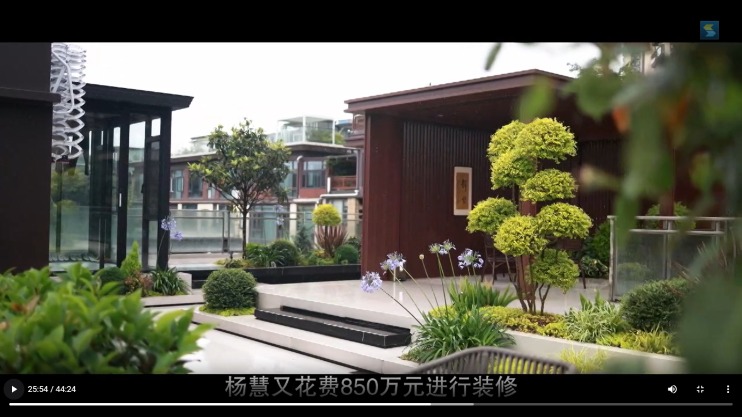 在4000万元买下别墅后,杨慧又花费850万元进行装修,光是别墅中新建的游泳池就花了230万元。这幢别墅位于贵阳市观山湖区某公园湖畔,共有四层,装修极尽奢华。