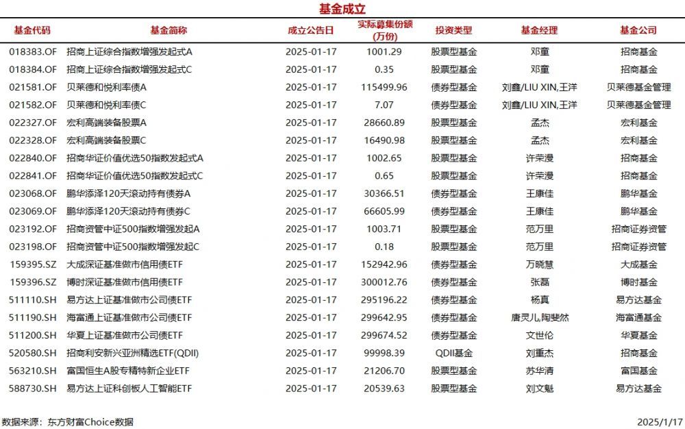 每经AI快讯,据东方财富Choice数据统计,今日共有20只基金公告成立(A/C类分开计算),包括10只股票型基金、9只债券型基金、1只QDII基金。
