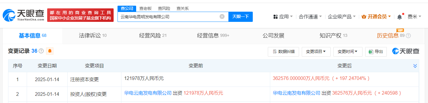 华电集团旗下昆明发电公司增资至36.3亿 增幅197%