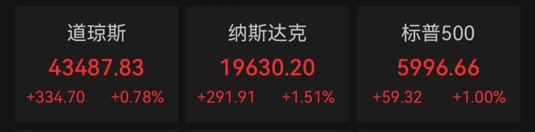 美东时间周五,美股三大指数集体收涨,纳指涨1.51%,标普500指数涨1.00%,道指涨0.78%。