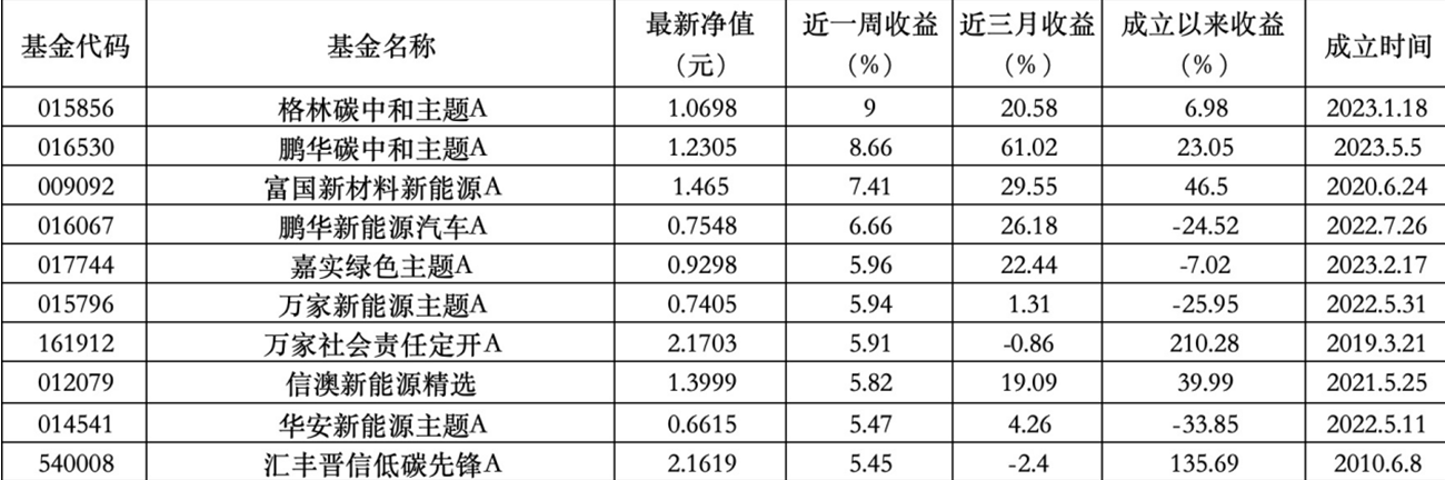 值得一提的是,本期上榜的泛ESG主题指数型基金全部为新能源行业ETF。同时,ESG主题指数型也有7只为ETF,可见在本周市场回暖的情况下ETF表现要优于其他指数型产品。