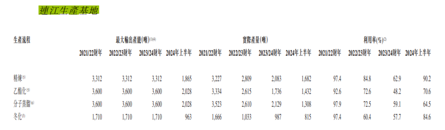 事实上,生产食品级鱼油产品的连江生产基地产能利用率逐年下滑,精炼流程产能利用率从2021/22财年的97.4%下降至2023/24财年的62.9%,在2024年上半年回升至90.2%;乙酯化、分子蒸馏、冬化生产流程的产能利用率从2021/22财年的90%以上已经低于2023/24财年的60%以下,2024年上半年回升至分别为70.6%、64.5%、84.6%。