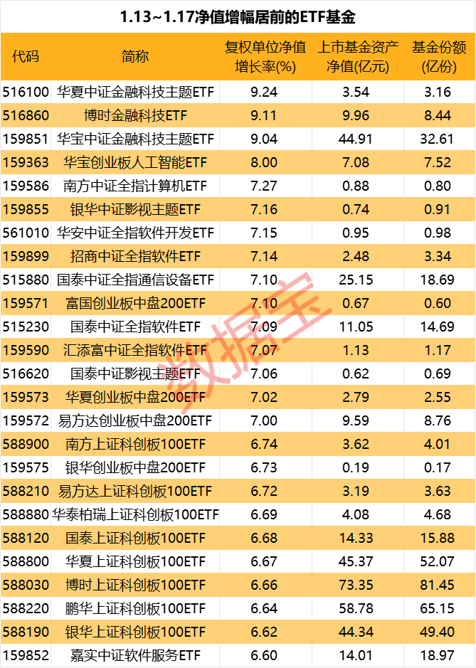 金融科技、科创100主题基金本周飙涨