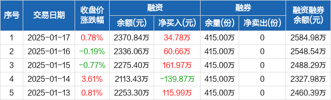 锂电池ETF:连续3日融资净买入累计257.41万元(01-17)