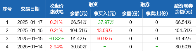 中证A500指数ETF:融资净偿还37.97万元,融资余额66.54万元(01-17)